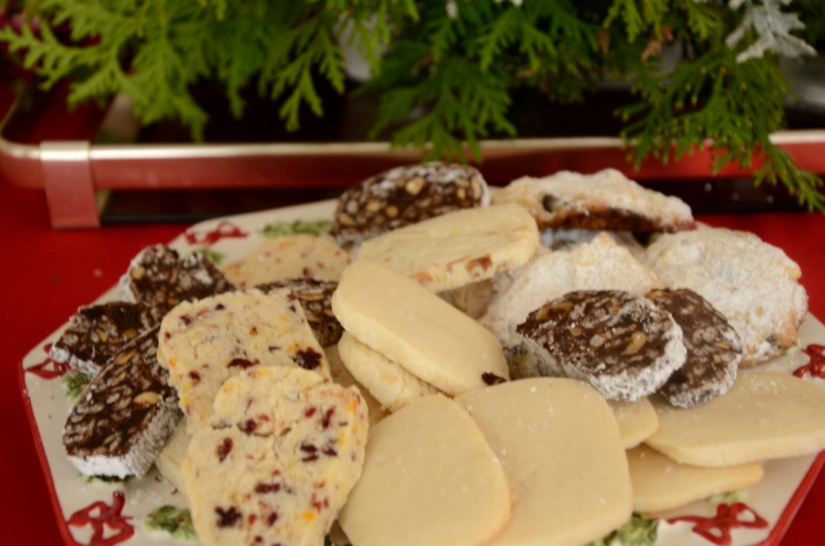 - When ready to bake, slice the log into ¼ slices. Arrange slices on the parchment pans, leaving at least a ½" between cookies.